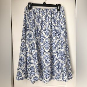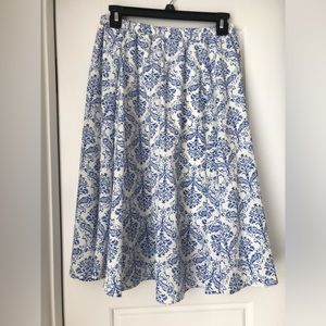 Beautiful skirt with elastic waistband and blue and white floral pattern