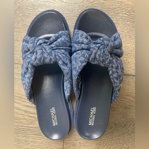 Michael Kors Womens Josie Knit Slip on Slide Sandals Blue 6 Medium (B M)