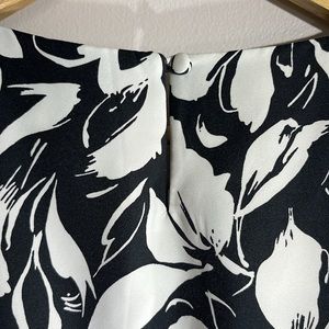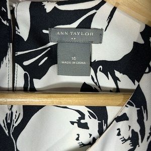 This is a beautiful black and white sleeveless floral top by Ann Taylor. Size 14. It has a tailored band at the waist and also has a hidden side zipper closure. It is preowned and in excellent condition like new.