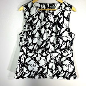 Ann Taylor Black White Floral Sleeveless Women’s Blouse Size 14