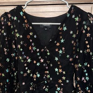 Stand out in the Jodi Top. Details include v neckline, long sleeves with button cuff, and hidden side zipper. Lined.