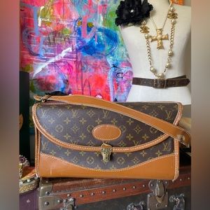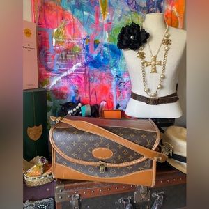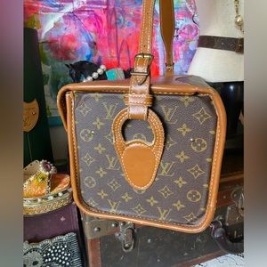 So proud to offer this amazing gem....rare vintage LOUIS VUITTON Train Case. Fun to arrive at your destination with this piece swinging on your arm. It's not found often, making it a more special piece to own and carry. Absolutely authentic, as always and crafted under license by Louis Vuitton. It was produced in the USA by French Company of California....a luxury luggage manufacturer between the 1970's and the 1990's. Vuitton collaborated with FC in order to help keep up with the extremely high demand for LV products in the USA! Details on this lovely - the LV monogram, symbol of luxury the world over, is in wonderful vintage condition - as is the entire piece! Leather also in nice shape considering it's over 50 "years young". Some scuffs and rubs as you might expect, but no heavy wear...as pictures reflect. Nice and strong adjustable carry strap. Lock functions nicely - key has been misplaced through the years. Inside lined in heavy vinyl...making it a breeze to keep neat and clean. Spacious interior will hold lots....in fact it's prior owner used it as a weekender and not a vanity case. The tray was removed. Sweet smell inside…will air in the sunshine! It's SO LOVELY....a piece you'll cherish and it will be a joy to travel with...keep it visible when not in use, as it will certainly cheer your closet! Measures 15 x 9 x 8" approx.