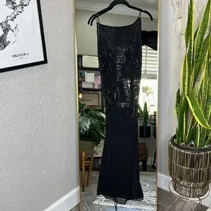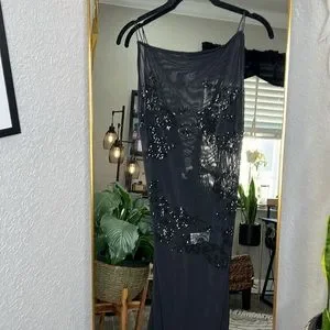 HOUSE OF CB 'Amirah' Black Mesh Crystal Embellished Midi Dress NWOT