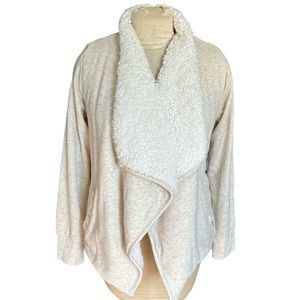 While not new without tags, this is certainly in excellent condition with no obvious signs of wear. Sherpa lining is still fluffy and not matted down. Front pockets that are deep enough to stash your phone or smaller wallet. Free of any offensive odors, this stores in a smoke/pet free environment. Measurements: pit to pit laid flat 21 inches. Length 25 inches. Sleeve length 25 inches. Shoulders laid flat 16 inches. Open front with an asymmetrical look. Prompt shipping. Cross posted.