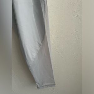 Size L, 77% polyamide/23% lycra, small pocket on back right side, mesh sides, high waisted, elastic waistband, above ankle length