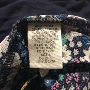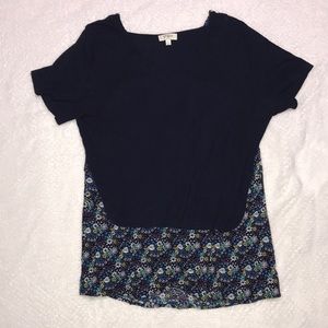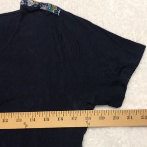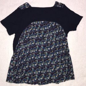 Super cute short sleeve top from Umgee! Navy front, navy floral print back and lower section of front. Great with jeans, knakis or white bottoms. Size large. Please see pictures for measurements and details. Non smoking home.