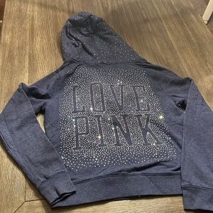 Women’s PINK hoodie size large, navy blue with gems all over it, in great condition