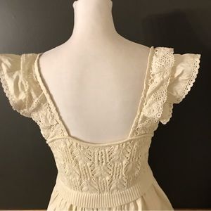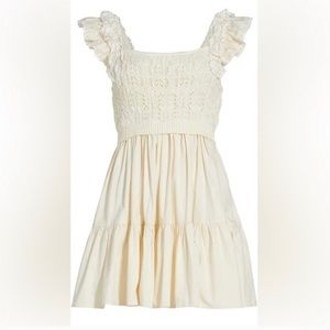 NWT $160 Anthropologie EN SAISON Creme Ruffled Square Neck Mini Dress Sz Medium