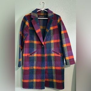 Rachel Zoe Multicolor Plaid Wool Blend Coat Size Small