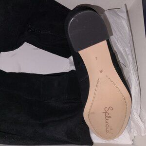 New SPLENDID 7 Charlotte Kensley Poet Black Suede Stretch OTK Over Knee Boots