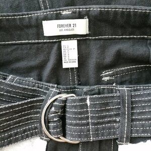 Forever 21 Womens Black Belted Flap Pocket Square Circle Mini Skirt Size S
