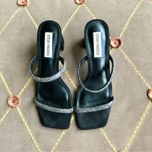 Steve Madden Sandals Slides with High Heel in Silver Sparkle & Black (7.5)
