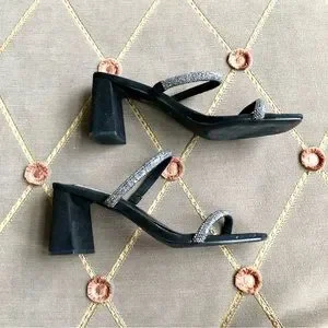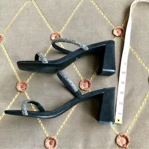 Sold Steve Madden Sandals Slides with High Heel in Silver Sparkle & Black (7.5)