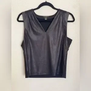 Halogen Faux Leather Black Media Sleeveless Top Size Small