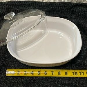 Pyrex glass serving dish with clear glass lid