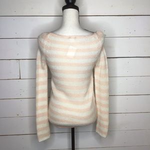 New J Crew Loose Knit Sweater Mohair Wool Blend, Pink White Stripe Women's XS