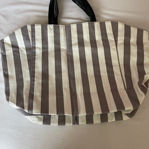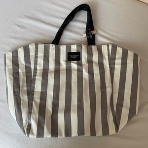 NWT Victoria's Secret Gray Striped Travel Beach Tote Bag 15 Inch