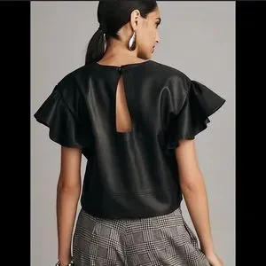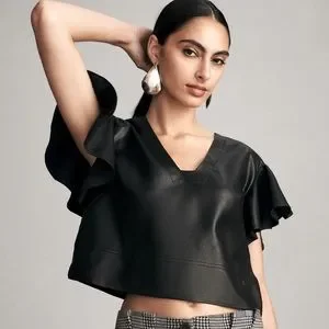 Maeve Cropped Ruffle-Sleeve Blouse - Large