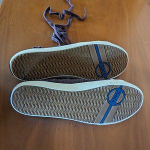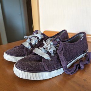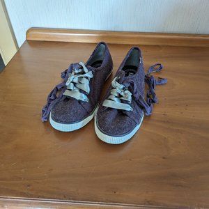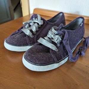 Fun pair of purple Keds, never worn! They are womens size 8. They have these fun ribbon type laces as well as normal laces. The material is a wool blend that's warmer than regular canvas Keds.