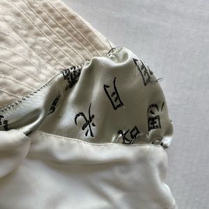 Vintage rare super hot Raven brand bustier style jacket with cuff able sleeves handmade in Indonesia size M off white with black characters