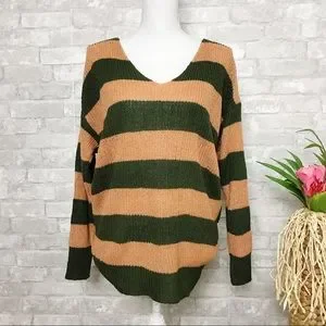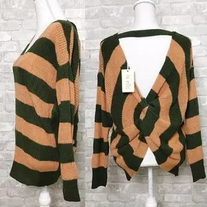 NWT Gorgeous Orange & Green Striped V-Neck Open Back Knit Sweater