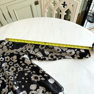 Bold metallic florals bloom on this sheer chiffon blouse from Alice + Olivia, a slightly oversized silhouette with undeniable head-turning appeal.