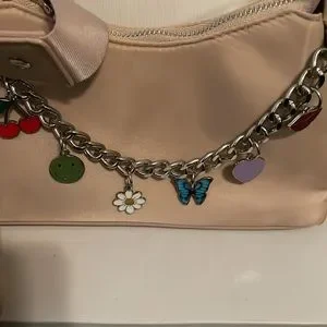Steve Madden purse Adjustable and Removable shoulder strap Removable coin purse Keychain detail.