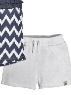 Burt’s Bees Baby Ikat Chevron Ruffle Tee & Short Set | 3–6M | NWT