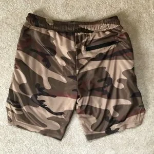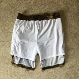Never worn. Runs small. Tag says XL but it’s a 30” waist. Inseam is 8”. Lined.