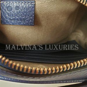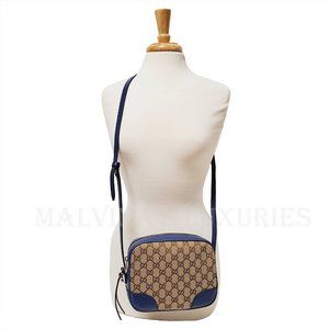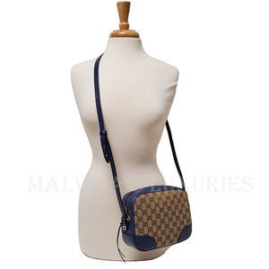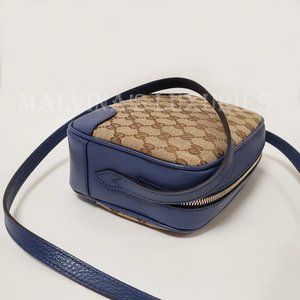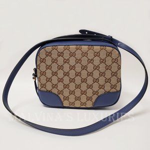 When it comes to style, why settle for anything less than Gucci? If you are looking for a bag that's as versatile as it is stylish, look no further than this Gucci crossbody bag that is crafted with a blend of blue leather and tan signature GG Guccissima canvas.