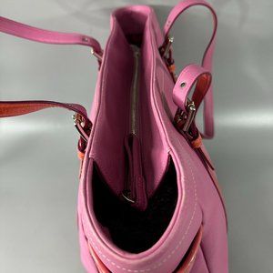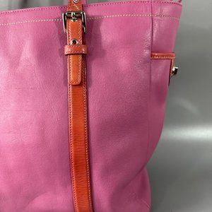 Two-tone (pink leather/orange pattern leather) adjustable top straps, drop approx. 12''
