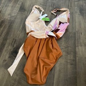 Anthropologie Sanctuary Tie Front Plung One Piece Swimsuit