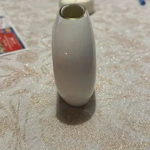 Beautiful bud vase that is made in the Chokin style of art. Chokin is the ancient Japanese art of engraving copper and gilding it with precious gold and silver & other decorative colors. The vase is a cream color and the front has a lovely circular panel featuring 2 peacocks on a cherry tree branch. There is gilding around the opening of the vase as well as the base. No imperfections on the panel. Slight smudge discoloration on the back.