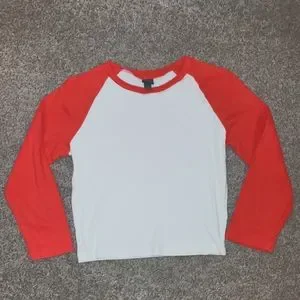 red sleeves on a white cropped top. super cute baseball tee only worn a few times