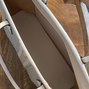 Tory Burch Gemini Link Coated Canvas Tote Bag Ivory Satchel Blue