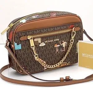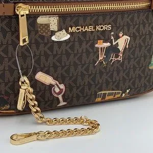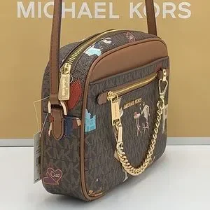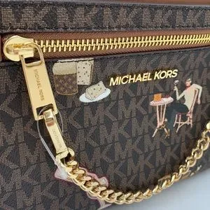 MICHAEL KORS JET SET GIRLS LARGE EAST WEST ZIP PACKED CHAIN XBODY Brown MULTI color