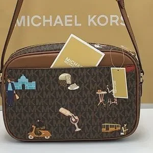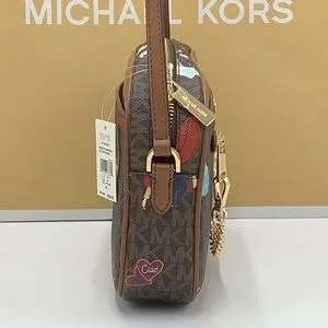 MICHAEL KORS JET SET GIRLS LARGE EAST WEST ZIP PACKED CHAIN XBODY BROWN MULTI