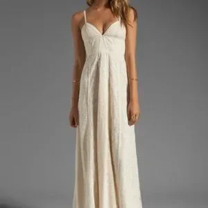 BCBG Lourie Rose Whisper Lace Maxi Dress Size 0 in Ivory. GUC
