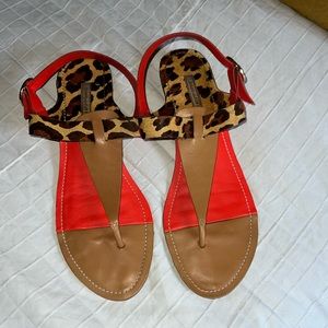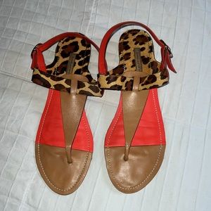 Super cute cheetah calf hair and leather thong buckle sandal size 10 pre loved!
