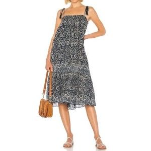 **SOLD* Ulla Johnson Eugenia Midi Dress Floral Vine Print Pockets Tassel Blue XS