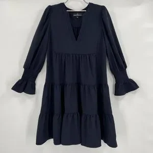 Pomander Place by Tuckernuck Navy Blue Crepe Kenzo Mini Dress sz XS Tiered NWOT