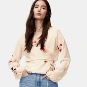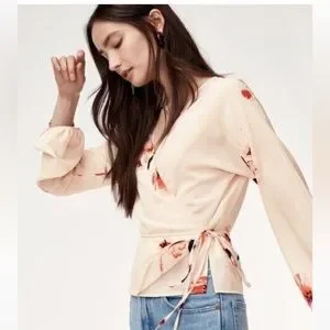 Wilfred floral pink wrap blouse, romantic and feminine, cute with jeans . Size medium