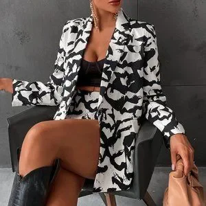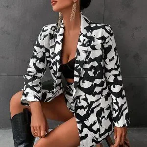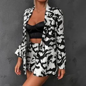 Black Preppy Womens Allover Print Blazer & Shorts