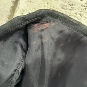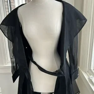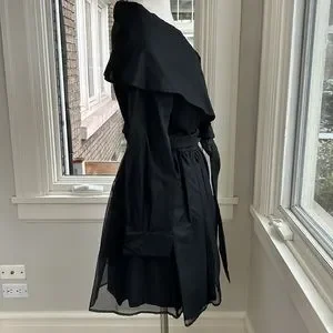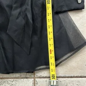 Fully lined. Sleeves are sheer and have rhinestone buttons on cuff. Wrap style. Deep v-neck style. EUC. Slight interior lining staining from hanger.will not affect look of the dress