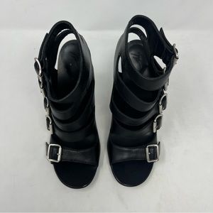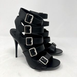 NEW Giuseppe Zanotti Buckle Strap Stiletto Heels Black Strappy Leather Size 37.5
