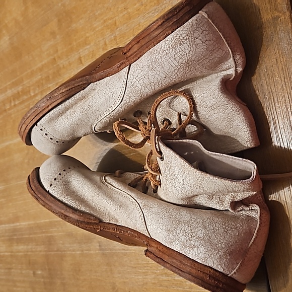 Magnolia Pearl bojangles lace-up boots. Distressed. Ivory. Leather soles. Worn twice. Great look. Size 38. Excellent used condition. BS99