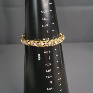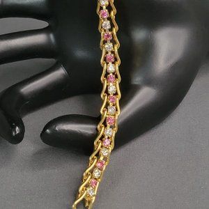 Womens Gold Tone Pink Clear Crystal Caged Tennis Fashion Bracelet 6 1/2 in
