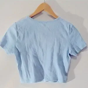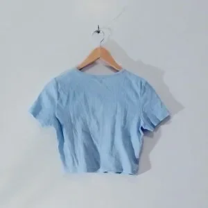 PLAYBOY Baby Blue Bunny Graphic Babydoll Crop Top T-Shirt fits XS and S