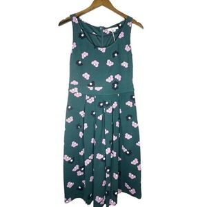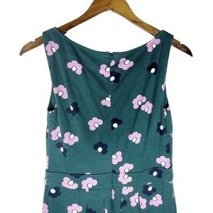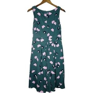 Boden Joanna Ponte Green Fit & Flare Pink Daisy Sleeveless Pleated Dress Sz 4R