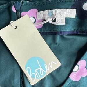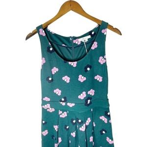NWT Boden Joanna Ponte Green Fit & Flare Pink Daisy Sleeveless Pleated Dress Size 4R.